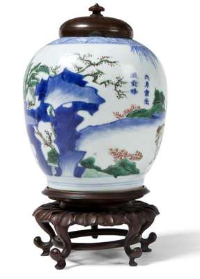 A Chinese porcelain famille verte ginger jar, Kangxi period