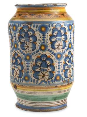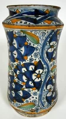 A Trapani or Naples maiolica albarello, probably second half of the 16th century