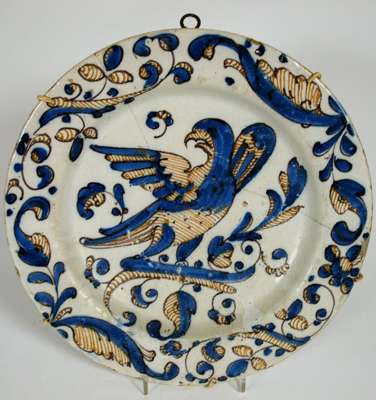 A small 18th century circular Castelli plate, dated 1733 Painted by Dr Francesco Antonio Grue
