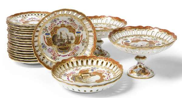 A late 19th century reticulated Dresden part porcelain dessert service After an original by Meissen