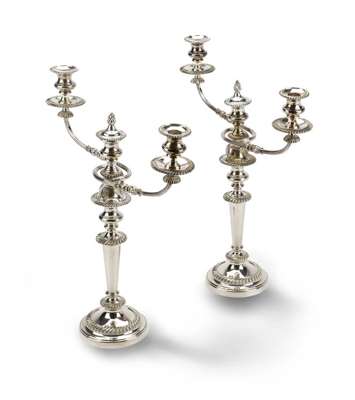 A pair of Sheffield plate three-light candelabra, circa 1815