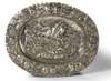 unmarked, chased in Baroque style with a battle scene within a berried leaf and pomegranate border