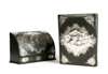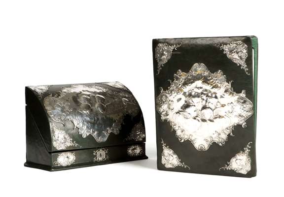 the domed box and folding blotter applied with shaped panels stamped with Reynold's cherubim and scrolls (2)