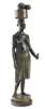 bronze, variously patinated, the green skirted bare breasted figure balancing a box on her head, a bowl and a calabash, circular base stamped with Gladenbeck & Sohn of Friedrichshagen Berlin foundry mark
