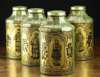 the cylindrical bodies with decagonally faceted short necks and slightly domed covers decorated in black or gold with chinoiserie strapwork, characters and a figure (4)