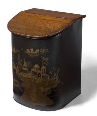 An early 19th century bowfronted toleware coal or tea bin