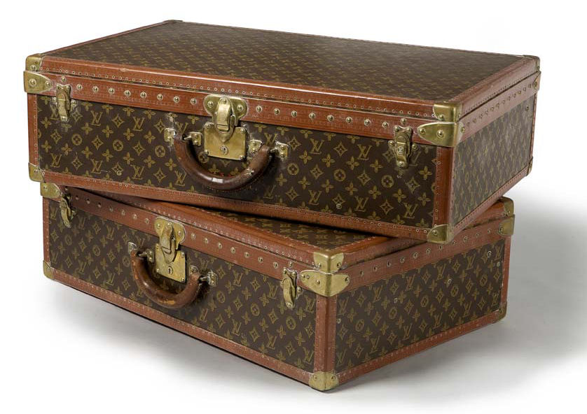 covered in the classic pattern and with brass corners and locks, one initialled T.H.H (2)