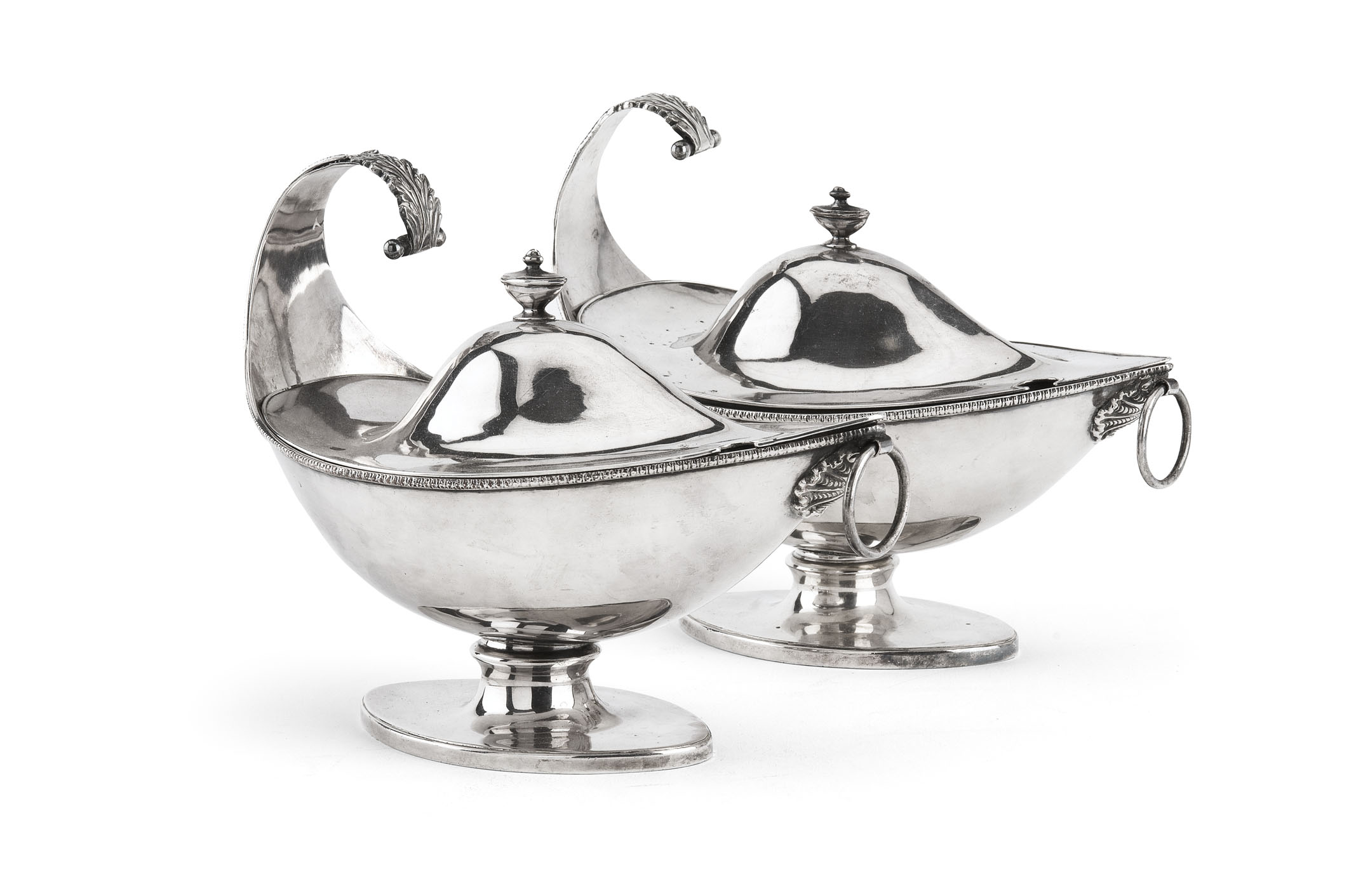 the shaped oblong box with sloped covers flanking the swing handle, decorated with tendrils of ivy and horn inlaid rims