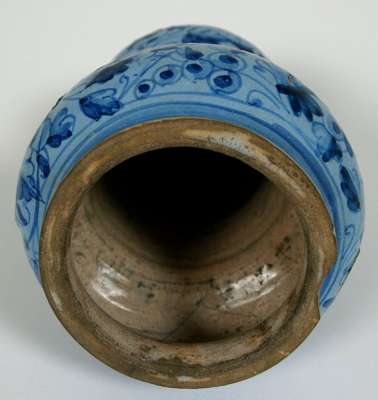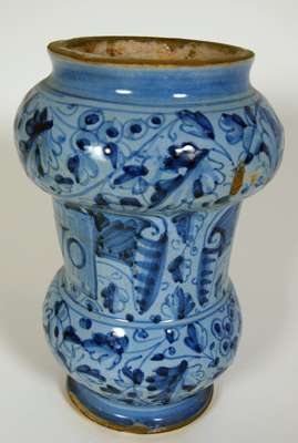 See Wendy Watson, 'Italian Renaissance Ceramics - the Howard I. Janet H. Stein Collectin and the Philadelphia Museum of Art', (Philadelphia Museum, 2001), p.162, cat. 77A and B and page 208 for reverse, for a similar pair of albarelli with similar decoration but in this case also painted in white.