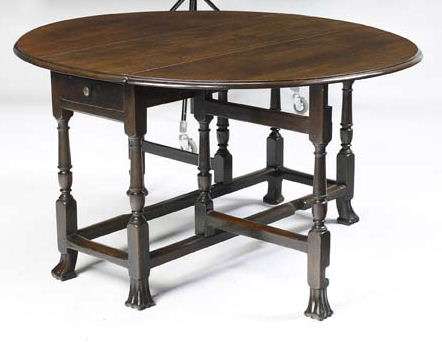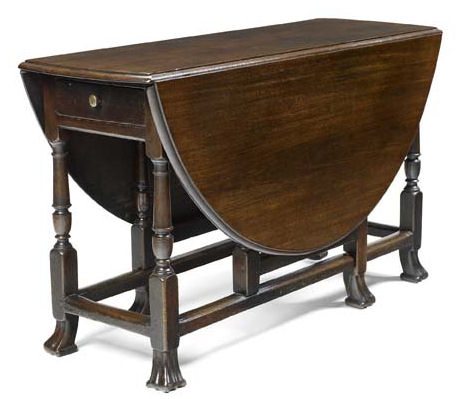 The moulded oval top above two lateral frieze drawers, raised on baluster turned legs ending on trefoil scroll feet