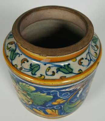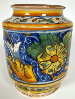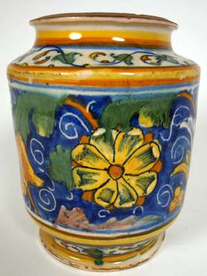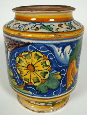 A 16th century Venice maiolica albarello, circa1560-1580 Probably from the workshop of Domenego Da Venezia