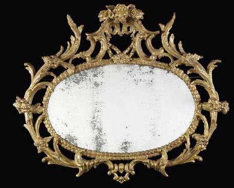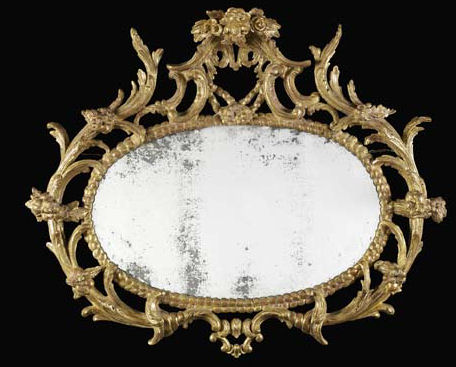 the original oval plate with an ornate C-scroll and foliated carved openwork frame