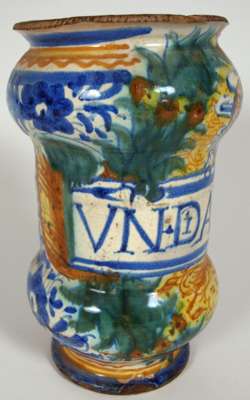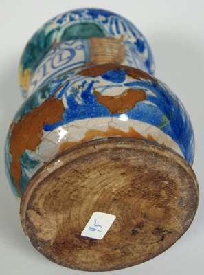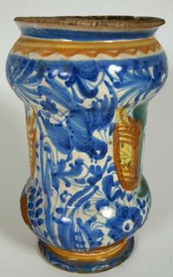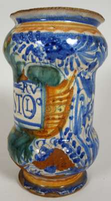 An early 17th century Italian maiolica armorial albarello Possibly from Deruta