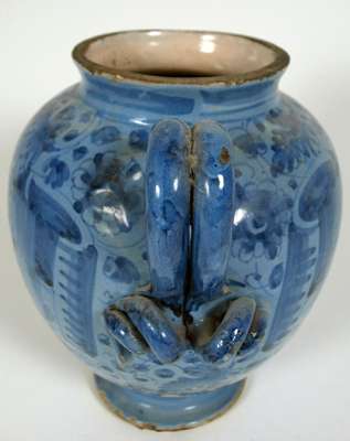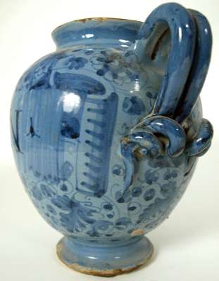A late 16th century 'berettino' ground Venice maiolica syrup jar