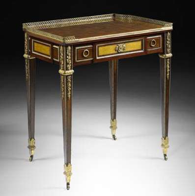 A fine late 19th century mahogany, purpleheart and gilt bronze mounted side table By Henry Dasson, in the Louis XVI style