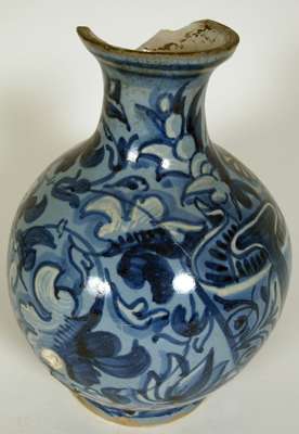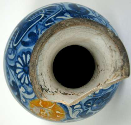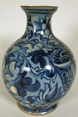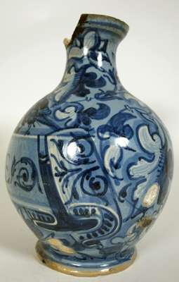 A late 16th century Venice 'berrettino' painted maiolica pharmacy bottle