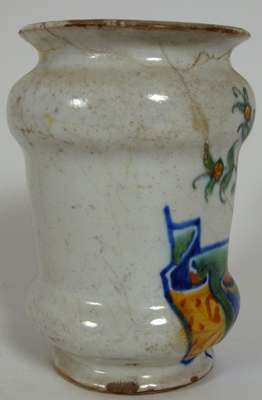 An early 17th century small maiolica albarello Probably Deruta or Castel Durante