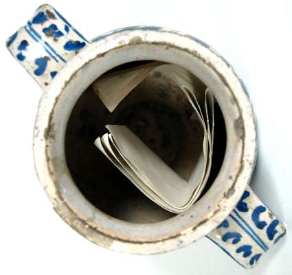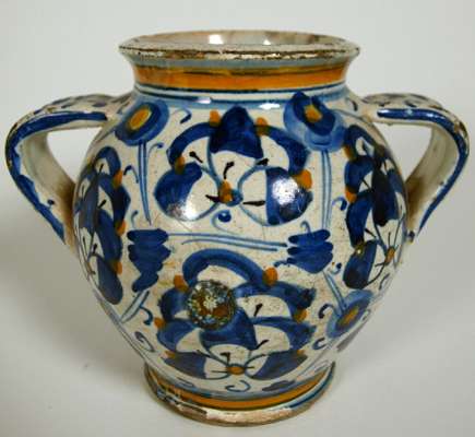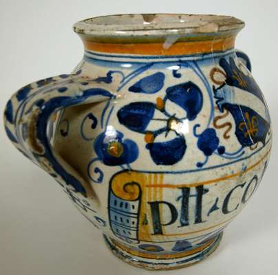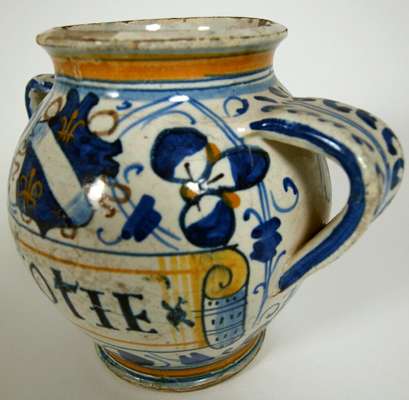 For another drug pot from this series see Rudolf E. A. Drey 'Apothecary Jars', (London, 1978), p. 34, pl.6c, author's collection.