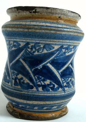 See a similar example in Fausto Berti, 'Storia della Cermica di Montelupo', Volume terzo - ceramiche da farmacia, pavimenti maiolicati e produzioni "minori", (Montelupo Fiorentino, 1999), p.278, cat.99
