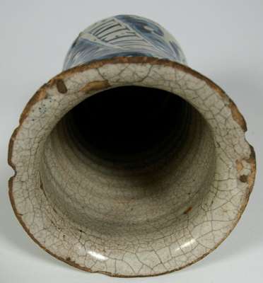 A late 17th/early 18th century Spanish Talavera maiolica albarello