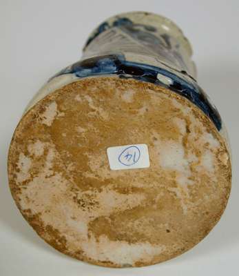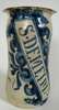 of slightly waisted cylindrical form, decorated in blue with a diagonal panel inscribed 'S.DEMEIMO' and surrounded by scrolling foliage