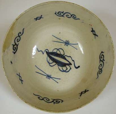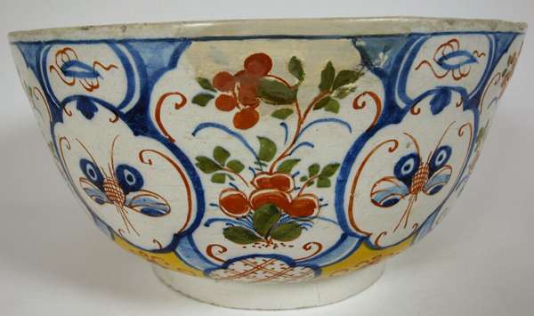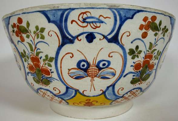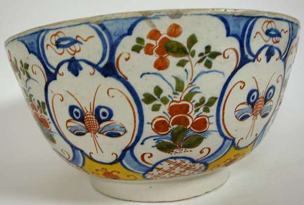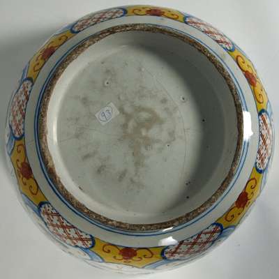 polychrome painted to the exterior with alternate panels of flowers and butterflies and to the interior with Daoist style symbols