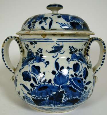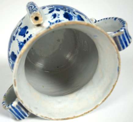 See F.H.Garner and Michael Archer, 'English Delftware', (London, 1972), Cat 57B for similar posset-pot inscribed on the base 'A1G Bristoll 1741'