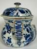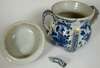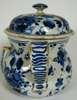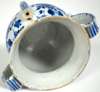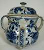 with twin handles and a curved spout, decorated in blue with stylised flowers in the Chinoiserie manner