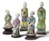A group of five different 18th century Chinese famille rose porcelain figures