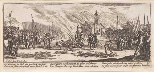 Note: A copy after the original plates of Callot's famous series Les Miserès de la Guerre, it depicts an unromanticised view of the horrors and brutality of war, an approach not seen again until Goya. First published in 1633, these impressions were, according to the titlepage, undertaken by Leon Schenk. Loosely inserted are two further prints by Callot of triumphal chariots.