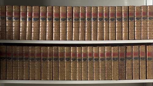 [with the modern part] compiled from original authors ... 2nd edition, 64 volumes, with over a hundred engraved maps, plates and tables many of which are fldg. in the 20 volumes of the Universal History (i.e. not the Modern Part], contemporary light tan calf, spines with gilt scroll and floral decorations in compartments, red and blue morocco lettering pieces, a little wear at heads and tails, some splits at the folds and margins of some of the fldg. plates, 8vo., London: Osborne [et al.], 1747-66 [64]