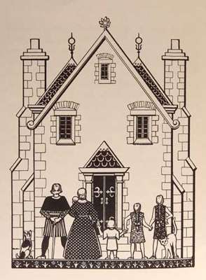 The house that Jack built ... drawn and commented on by Robert Burns limner ...1st thus, illus., publisher's printed paper boards, quarter cloth, folio, Edinburgh: Moray Press, 1937