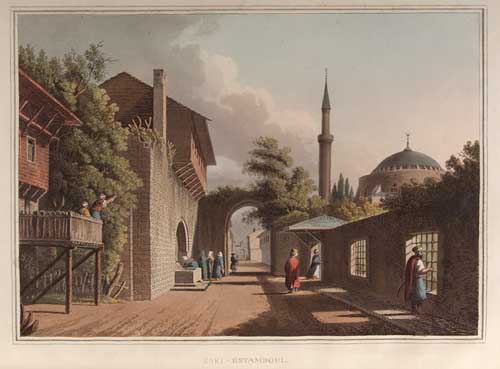A selection of the most interesting of Sir Robert Ainslie's celebrated collection of views in Turkey in Europe, and in Asia; Syria, Sicily, the Eolian Islands ... 19 hand coloured engraved plates (including 1 fldg. double page of Constantinople), contemporary half morocco, paper boards, spine and corners worn, marginal tear in the plate of Constantinople, folio, London: Bowyer, 1812.