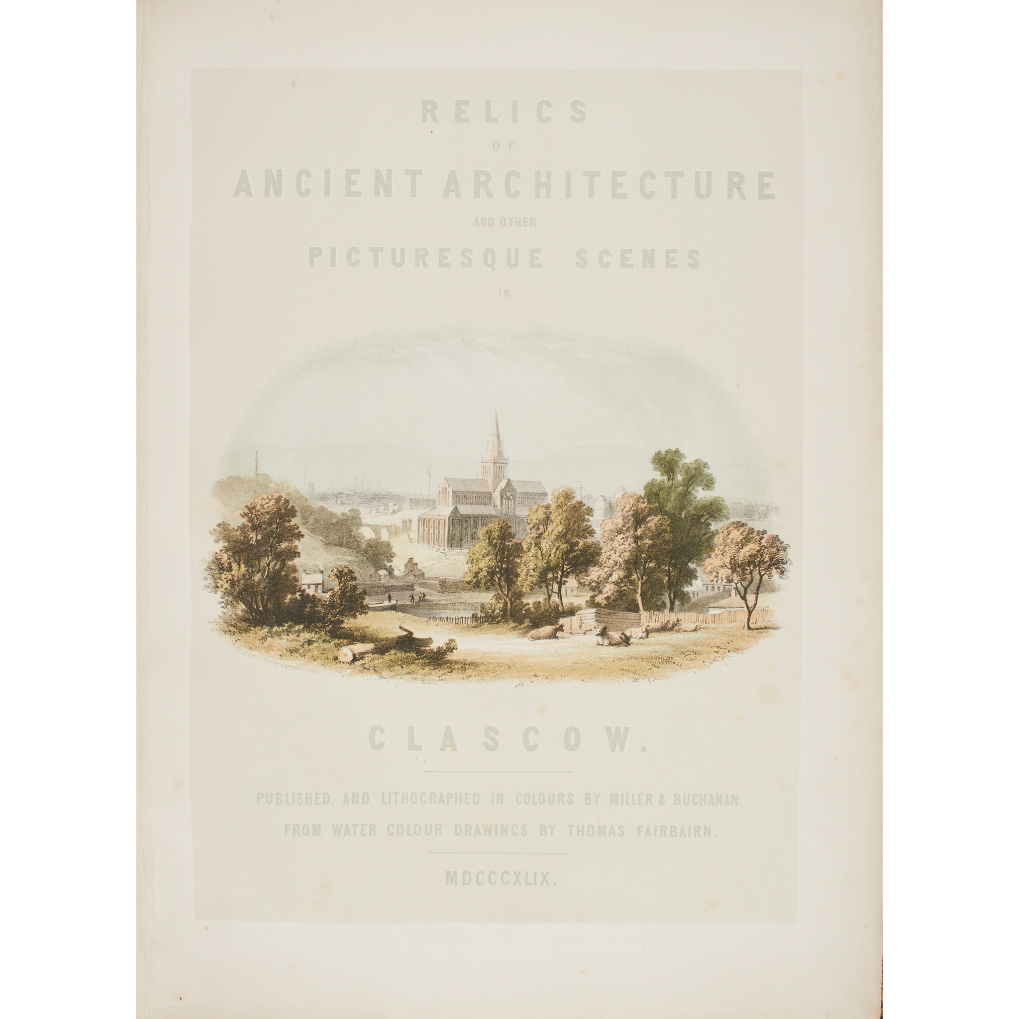 Glasgow: published, and lithographed in colours by Miller & Buchanan, from Water Colour Drawings by Thomas Fairbairn, 1849. First edition, large folio (65 x 43cm), c.1900 green crushed morocco gilt by Riviere & Son, marbled endpapers, broad inner dentelles gilt, marbled endpapers, all edges gilt, chromolithographic vignette title-page, 4 pp. descriptive letterpress, 20 chromolithographic plates with tissue-guards, pale mottling to rear cover, spotting to endpapers and blanks [Abbey Scenery 502]