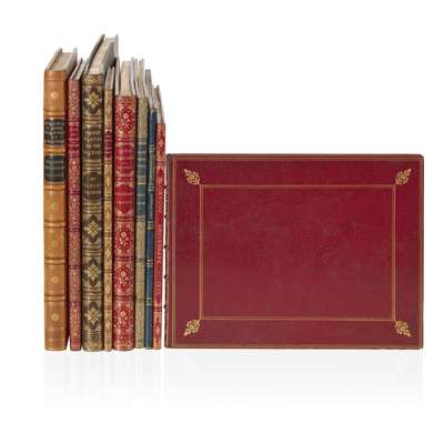 Idem. [Life of Grimaldi] Small 4to containing plates only by Cruikshank, with a hand-coloured portrait, decorative red morocco gilt by Bedford;