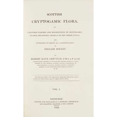 Edinburgh: Maclachlan & Stewart, 1823. 6 volumes, 8vo, half-titles, 360 hand-coloured plates, contemporary red calf gilt with diced floral decoration to covers, occasional very slight dampstaining and a little minor foxing, spines sunned (6)