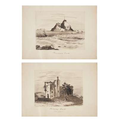 Comprising: Dumbarton Castle; Rothesay Castle; Loch Leven Castle; and Ruthven Castle; each laid-down with 19th century inscription to mount, each image including mount c.26 x 36cm (4)