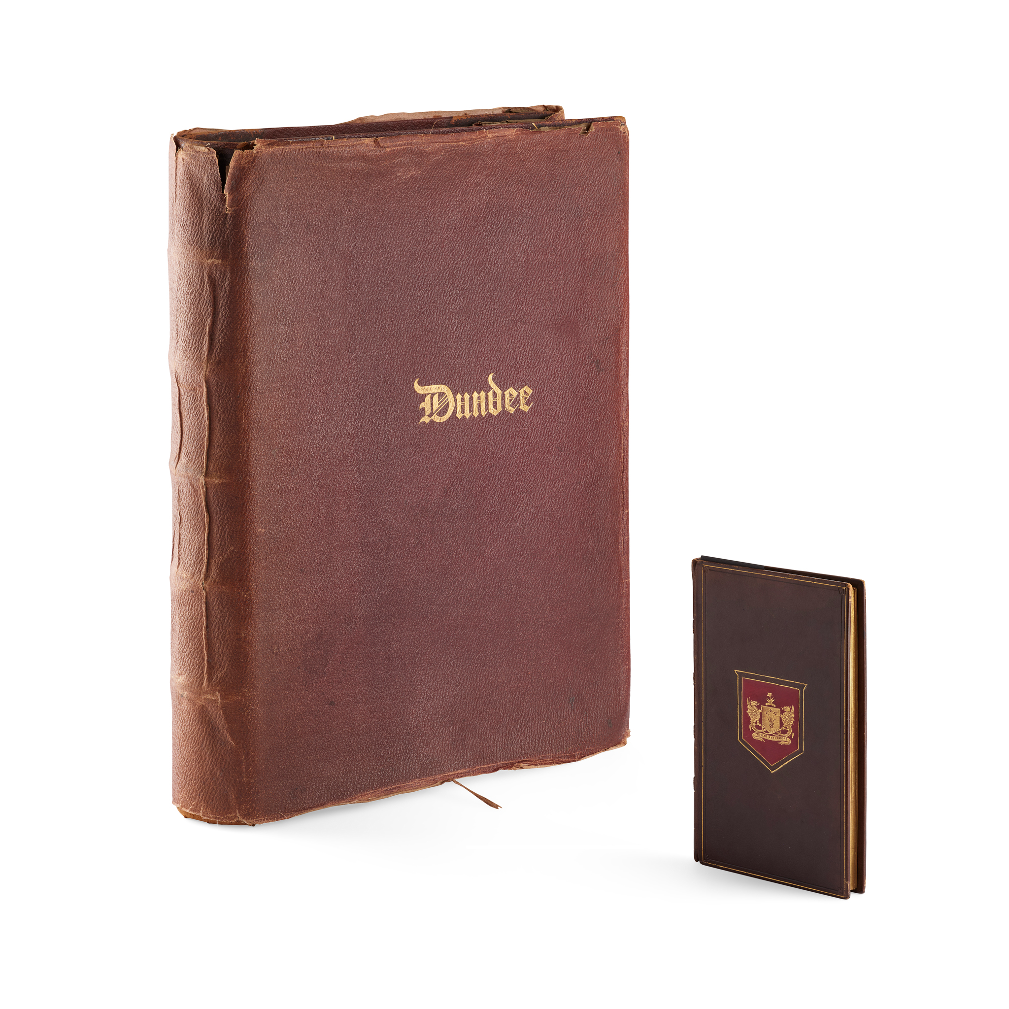 Lamb, A.C. Dundee. Its Quaint and Historic Buildings. Dundee: G. Petrie, 1895. Large folio, number 296 of 357 small paper copies, 59 plates, original brown half morocco gilt, t.e.g., cloth dustwrapper, extremities lightly rubbed (2)