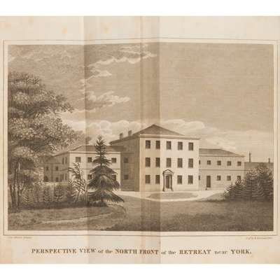 Containing an Account of its Origin and Progress, the Modes of Treatment, and a Statement of Cases. York: W. Alexander [and others], 1813. First edition, 8vo, double-page engraved frontispiece, two double-page plans, contemporary half calf gilt, some rubbing to covers, joints worn, some browning and very minor dampstaining