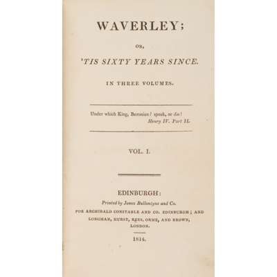 Edinburgh: James Ballantyne and Co., 1814. First edition, 8vo, lacking half-titles, with Worthington's issue points in each volume, contemporary calf gilt, a little rubbed, bookplates of Hugh Earl of Eglinton (3)
