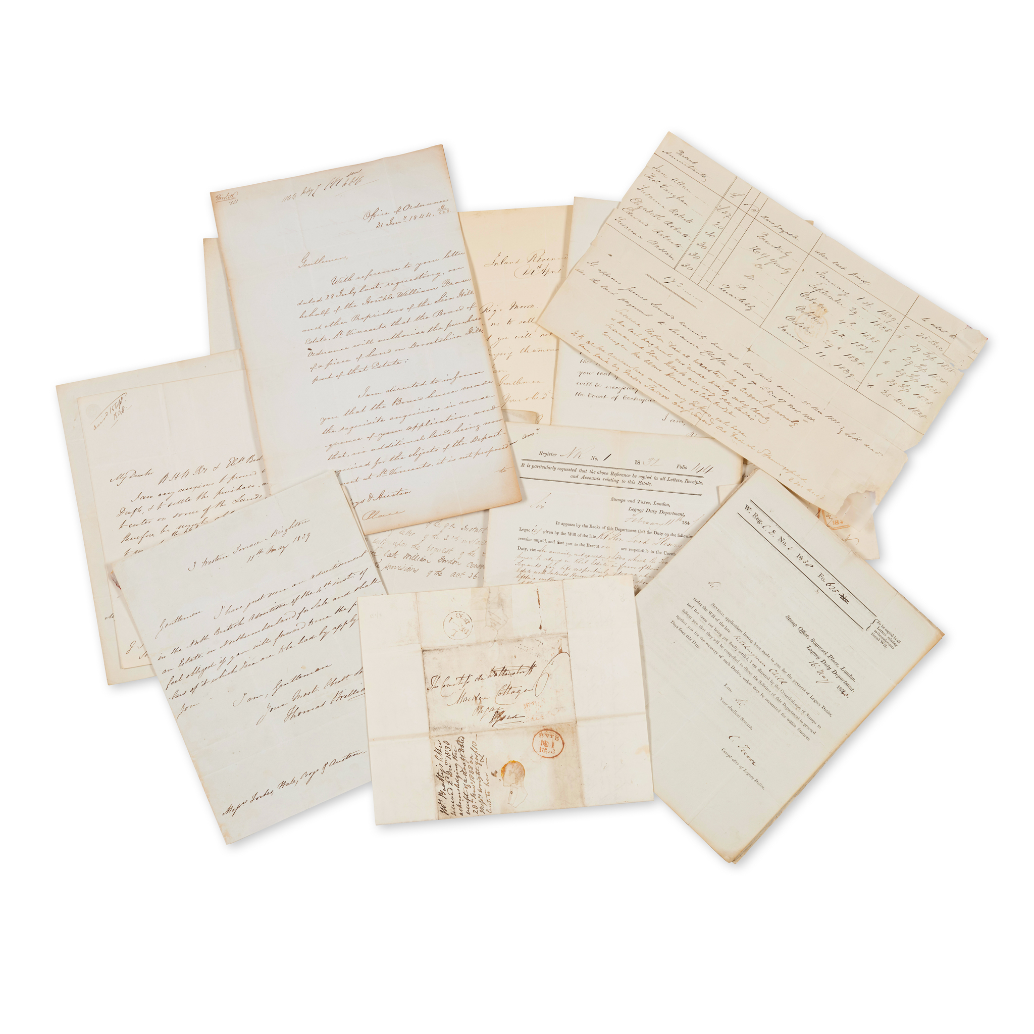 A miscellaneous collection of c.90 letters and covers from the 18th and 19th centuries, many relating to legal and financial affairs, including several sent to Hastings Elwin Esq. of Bath from his lawyers at Broad Street; a bank statement written to Lord Viscount Melville in June 1827 from the Comercial Bank; and many others (c.90)