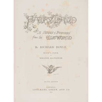 A Series of Pictures from the Elf-World. With a Poem by William Allingham. London: Longmans, Green, and Co., 1875. Second edition, folio, 15 hand-coloured plates, original green cloth gilt, some leaves detached (as usual), some slight foxing, covers a little bowed