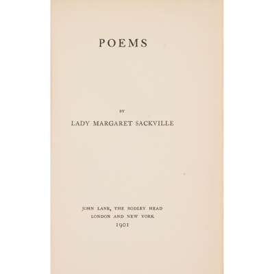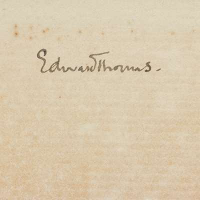 With Edward Thomas's ownership inscription in black ink to the front free endpaper; the fifth stanza of the poem ‘The Death of Beatrice’ on page 41 is annotated in pencil ‘D.G.R.’, presumably a reference to Dante Gabriel Rossetti; there are further pencil-markings to pages 6, 14, 15, 17, 19, 47 and 50. Thomas's review of the work appeared in the 2nd July 1901 edition of the Daily Chronicle, where he began work shortly after leaving Oxford. ‘In 1901 Thomas and his family moved to Rose Acre Cottage at Bearsted, near Maidstone, Kent. His dependence on reviewing caused a conflict between necessity and creativity. Despite succeeding Lionel Johnson as a regular reviewer for the Daily Chronicle, he was earning less than £2 a week. He mainly reviewed contemporary poetry, reprints, criticism, and country books … During these years Thomas often saw himself as “a doomed hack” … Repressed creativity was a factor in his recurrent physical and psychological breakdowns’ (ODNB).