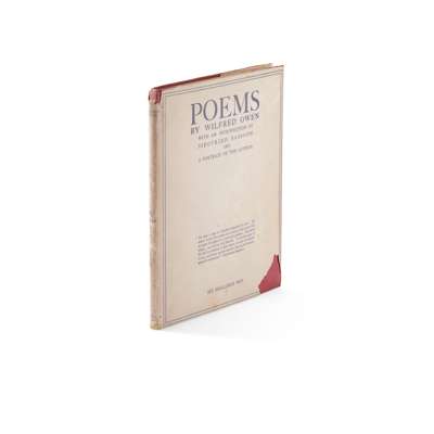 With an Introduction by Siegfried Sassoon. London: Chatto & Windus, 1920. First edition, first impression, 4to, ix [3] 33 pp., original red cloth, paper spine-label, fore and bottom edges untrimmed, photogravure portrait frontispiece with tissue-guard, with the dust jacket, pale mottling to cloth, dust jacket slightly spotted, with loss to head of spine and lower fore corner of front panel and a few other small nicks and chips, repairs verso