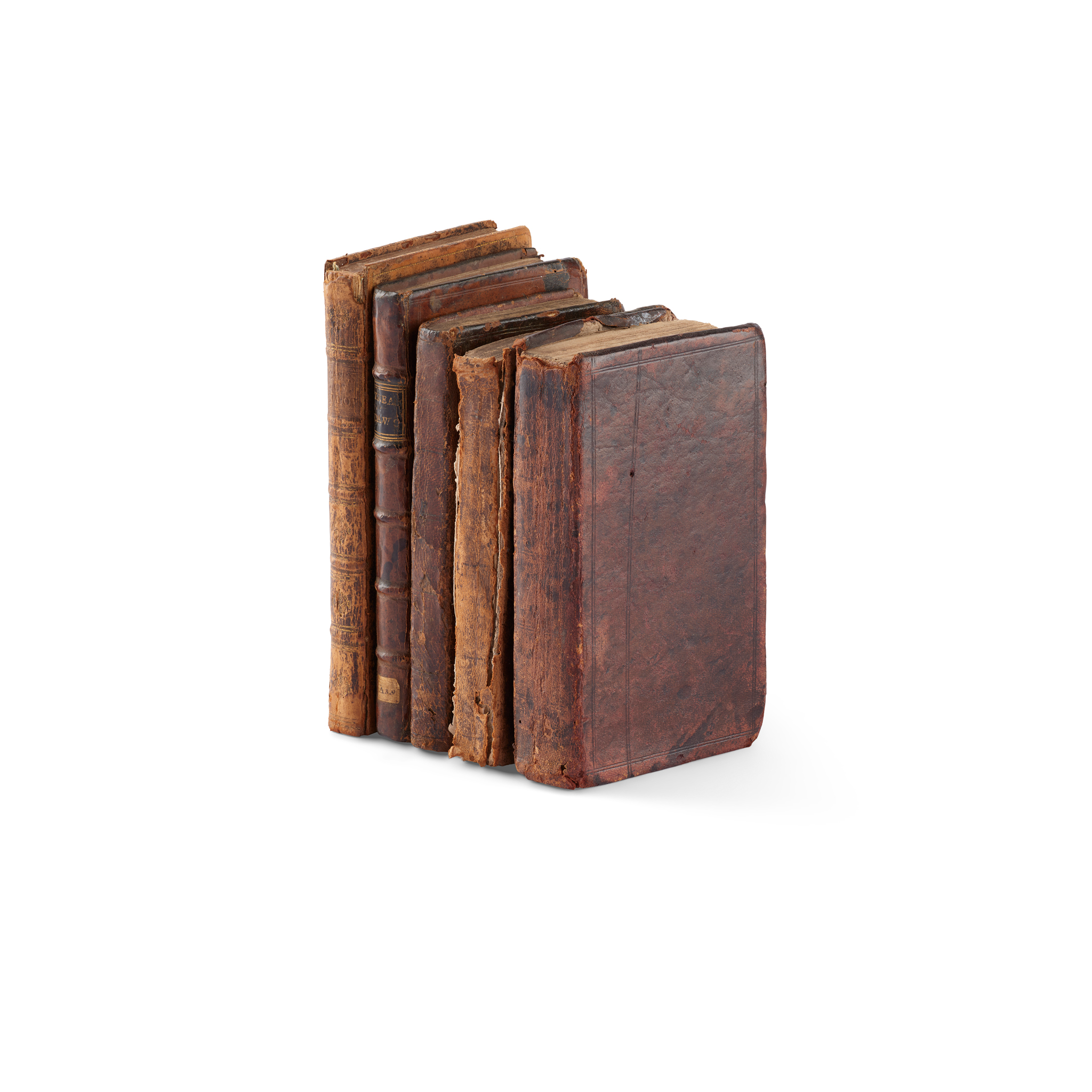 and 3 others (Debes, Faerooe, and Foeroa Reserata: That is a Description of the Islands and Inhabitants of Foeroe, 1676, first edition in English, engraved folding plate torn, lacking folding map; A Collection of the Several Statutes … now in Force, relating to High Treason, 1710, first edition; and George Abbot, The Case of Impotency, 1719, third edition) (5)