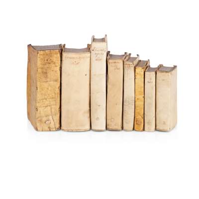 and 2 others (not collated: Ravisi, Epitheta, 1606, 8vo, contemporary vellum, vellum manuscript waste spine-lining visible, and Henrich Smet, Prosodia, Amsterdam, 1658, 8vo, contemporary vellum) (8)
