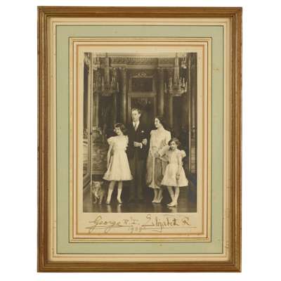 Signed family portrait photograph with Princess Elizabeth and Princess Margaret, 1939