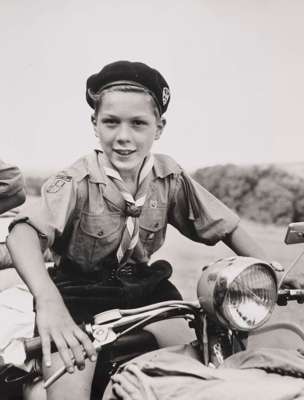 Jacques Simonot. Photograph of a young Boy Scout on a bike, 18.5 x 24cm, mounted (18)