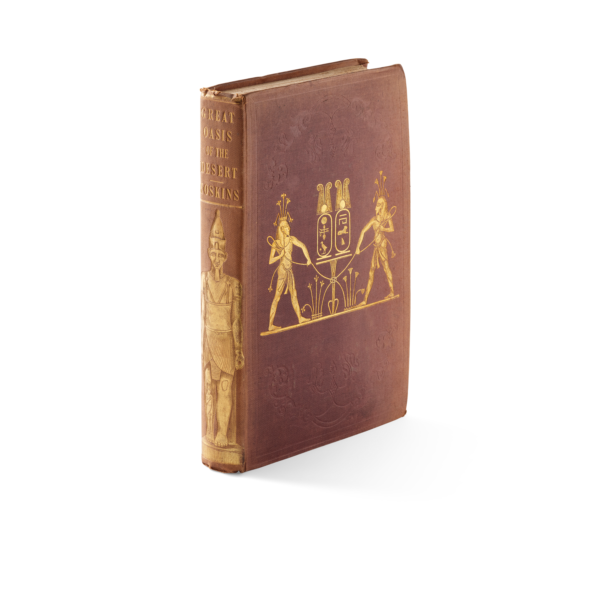 With an Account, Ancient and Modern, of the Oasis of Amun, and the Other Oases now under the Dominion of the Pasha of Egypt. London: Longman, Rees, Orme, Brown, Green, & Longman, 1837. First edition, 8vo, xvi 338 pp., original maroon cloth lettered and decorated in gilt and blind, 17 tinted lithographic plates including frontispiece, 3 folding lithographic plates showing Egyptian wall paintings, folding map to rear, spine sunned, headcap slightly frayed, light peripheral fading to boards, marginal spotting to frontispiece, a little light spotting elsewhere [Blackmer 833; not in Abbey]