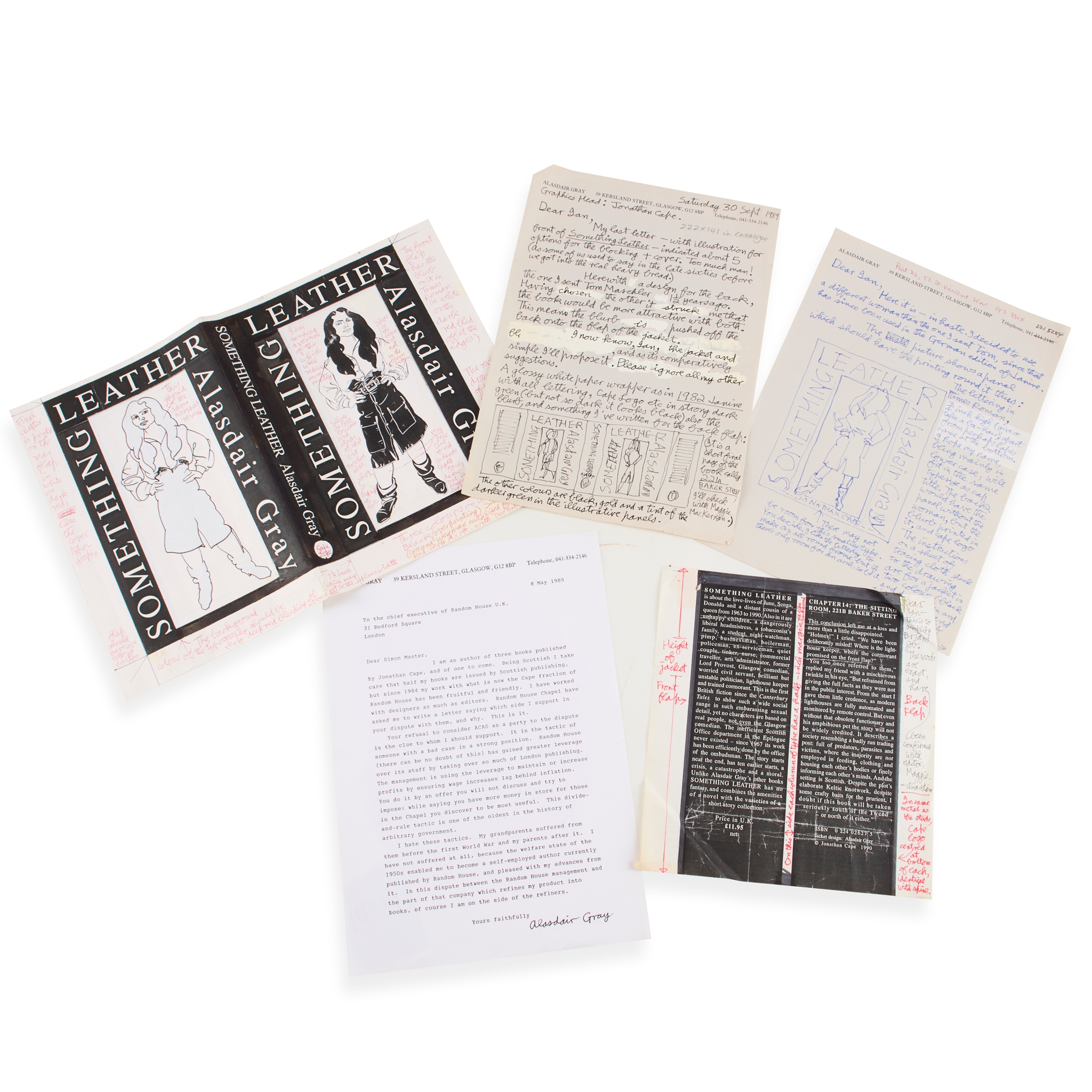 Together with: 2 autograph letters signed from Gray to Ian Craig as art director at Jonathan Cape, 1989, each including an original sketched cover design by Gray (each a single foolscap sheet of Gray's personal stationery, 29.8 x 21cm, written on both sides); a photocopy of the design for the dust jacket flaps, annotated and marked up by Gray in red and black ink, 22 x 21cm; and 1 related item